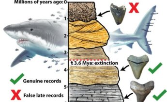 [사이언스 데일리] 새로운 연구에 의하면 수많은 다큐멘터리, 책, 그리고 블록버스터 영화에 영감을 준 포식성 거대 상어 ‘메갈로돈’ 은 이전에 생각했던 것보다 최소한 1백만년 정도는 일찍 멸종했을 것이라고 한다. 이런 변화는 상당히 큰 것인데, 1백만년에서 2백5십만년 전에 멸종했던 특이한 물범, 바다코끼리, 바다소, 쇠돌고래, 돌고래와 고래 등의 동물들이 멸종한 것보다 메갈로돈이 훨씬 일찍 멸종했다는 의미이기 때문이다.