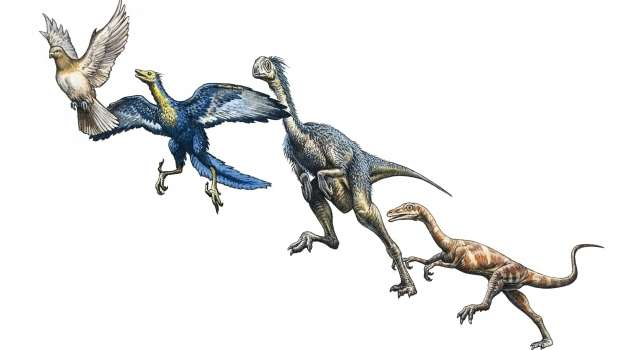 꼬리깃털과 피부가 보존된 채 발견된 오르니토미무스 공룡이 공룡과 새가 가까운 관계라는 것을 더욱 확실하게 해주다