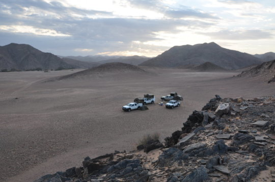 나미비아 북부에서 밤을 지내기 위해 차려진 캠프 Credit: C. Haberland, GFZ