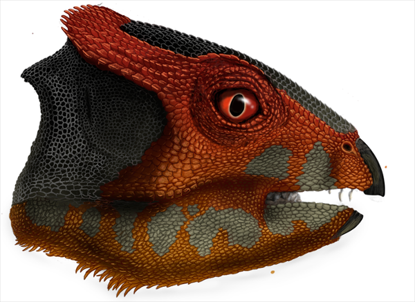 연구자들이 뒷다리로 서고 스파니엘 정도 크기였던 새로운 초식공룡 종 후알리안케라톱스 우카이와넨시스 (Hualianceratops wucaiwanensis) 를 보고했다. Credit: Portia Sloan Rollings