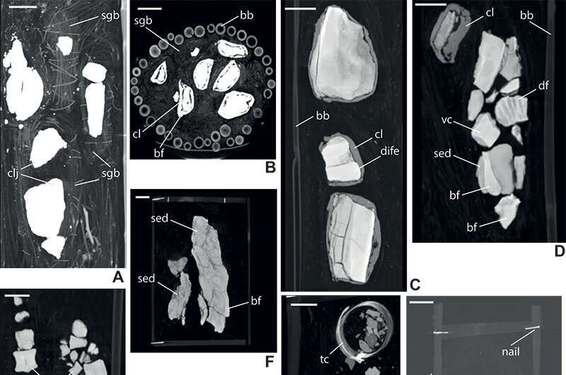 참고문헌: Daniela Schwarz et al, Description of content of unopened bamboo corsets and crates from Quarry Ig/WJ of the Tendaguru locality (Late Jurassic, Tanzania, East Africa) as revealed by medical CT data and the potential of this data under paleontological and historical aspects, Palaeontologia Electronica (2023). DOI: 10.26879/1231. https://palaeo-electronica.org/content/2023/3747-bamboo-corsets-from-tendaguru